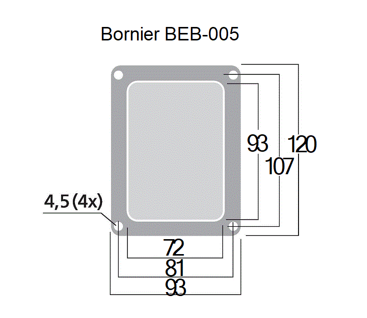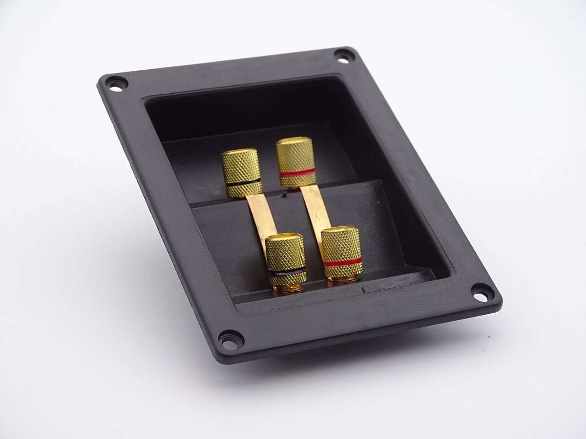 Bornier d’enceinte rectangulaire à encastrer contacts dorés double branchement pour bi-amplification-dimensions