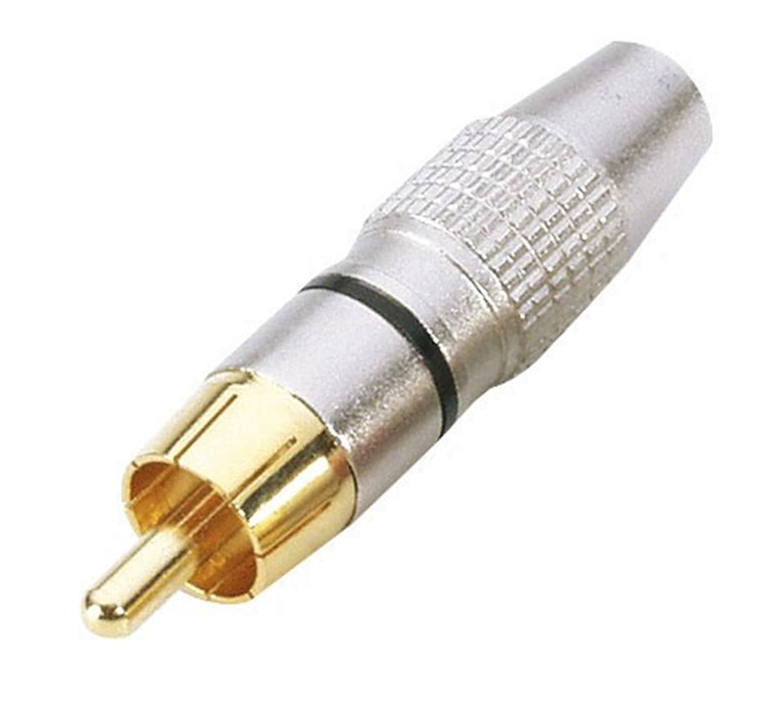 - Design : La fiche RCA mâle se compose d’une broche centrale qui se connecte à une prise femelle, généralement de forme cylindrique. Le diamètre de la fiche est de 6,35 mm (un quart de pouce) et elle est souvent utilisée en combinaison avec d’autres fiches pour transmettre plusieurs signaux simultanément, comme l’audio stéréo ou la vidéo composite.