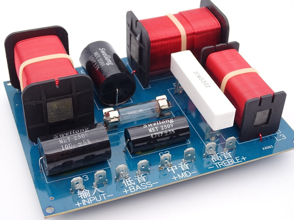 Ce filtre haut parleur 3 voies de qualité professionnelle comporte 1 sortie1 « Bass », 1 sortie médium et 1 sortie tweeter.