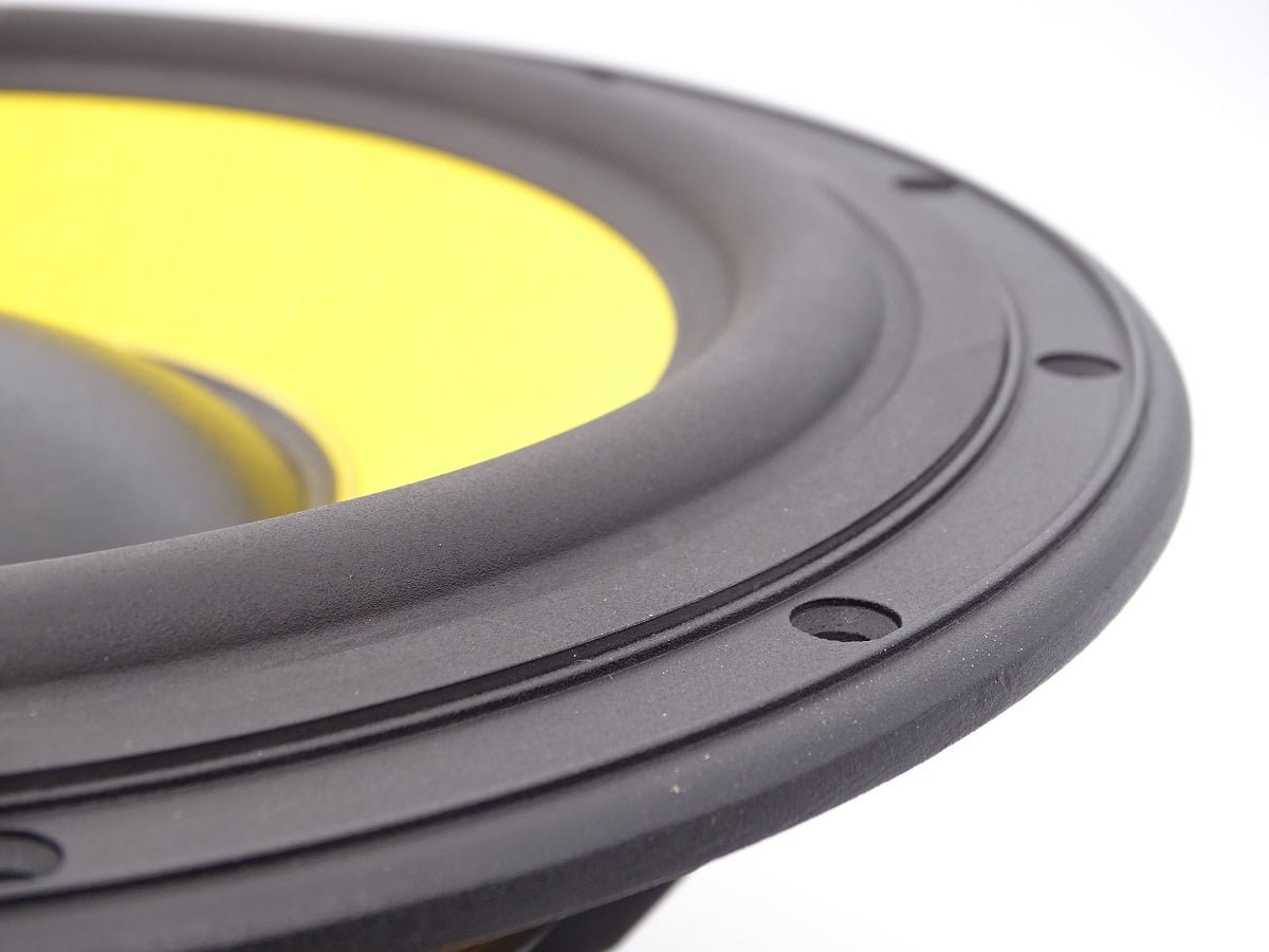 - Membrane légère et extrêmement rigide réalisée en fibres de papier renforcées par des fibres de Kevlar pour un son naturel et précis.