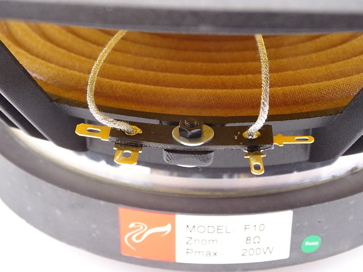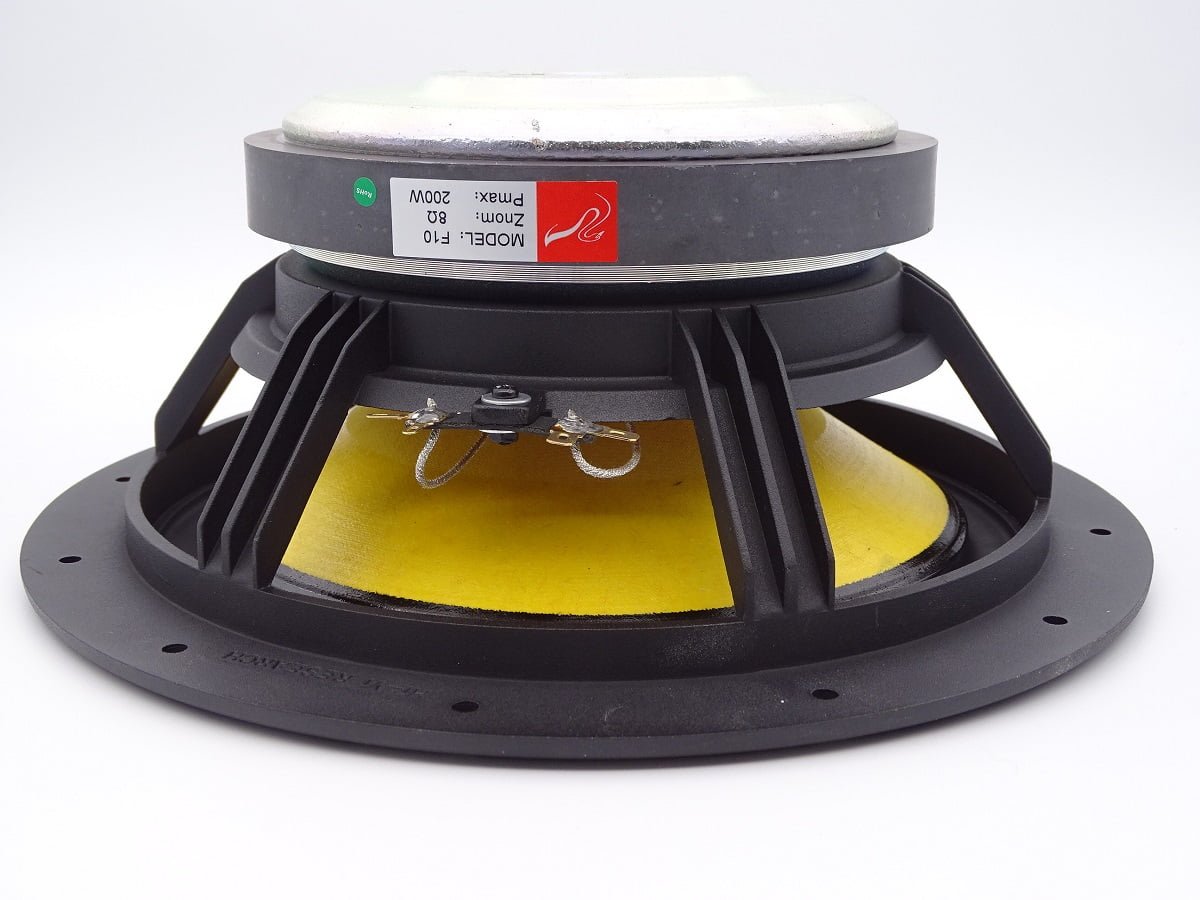 Haut-parleur 28,6 cm – grave subwoofer – 200 watts – 8 ohms – membrane kevlar – suspension caoutchouc – HiVi Research Swans F10 courbe de réponse