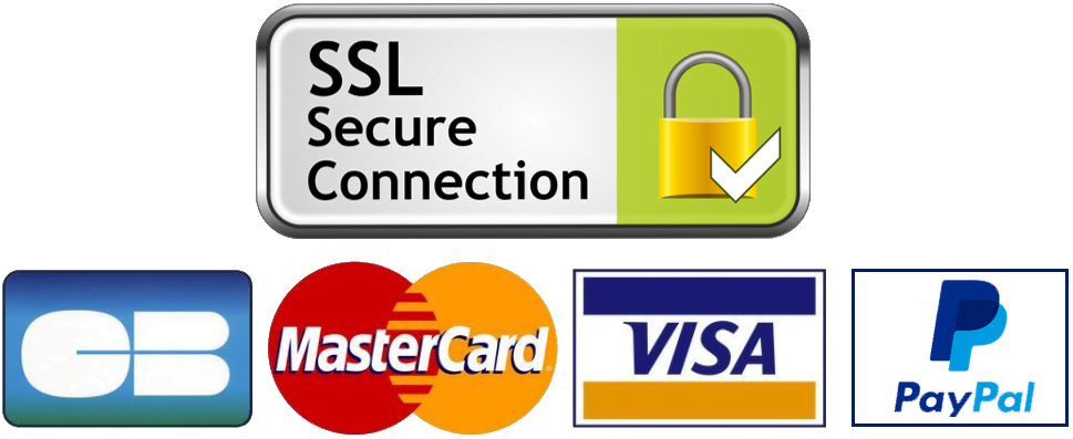 Paiement par cartes bancaires CB, VISA, MASTERCARD, AMEX 100% sécurisé.
