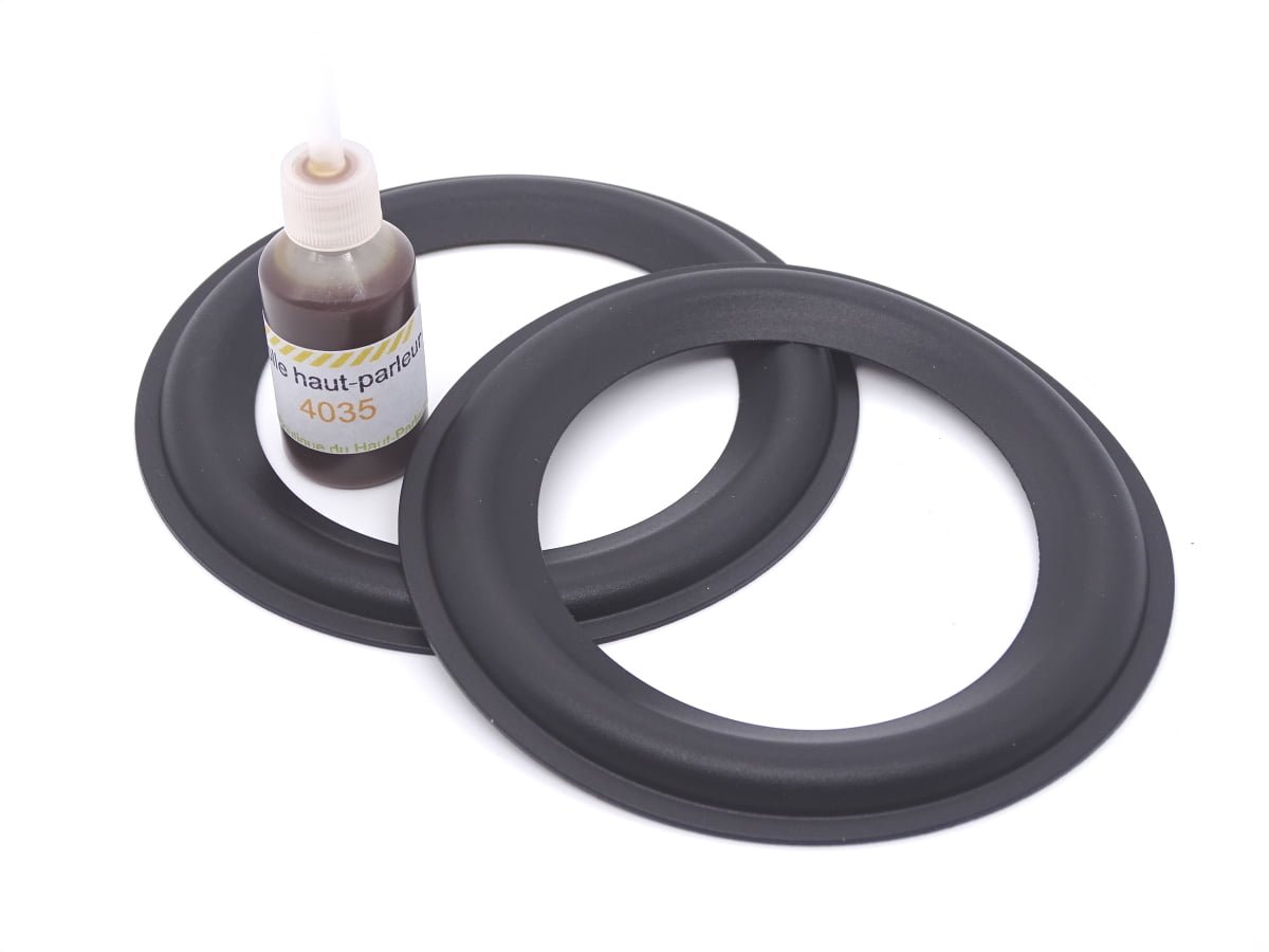 Kit de réparation haut-parleur comprenant 2 suspensions caoutchouc nouvelle formule et 1 colle spéciale haut-parleur.