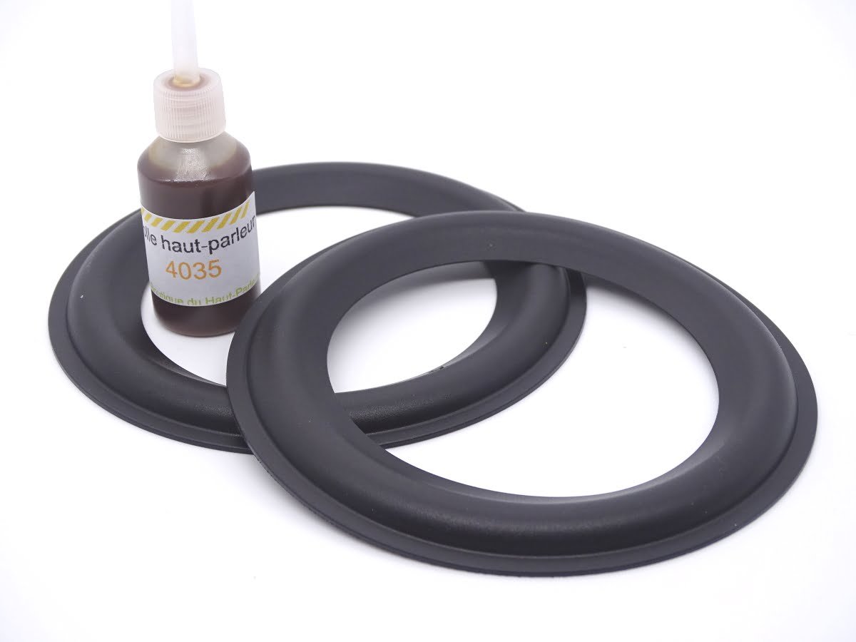 Kit de réparation haut-parleur comprenant 2 suspensions caoutchouc nouvelle formule et 1 colle spéciale haut-parleur.