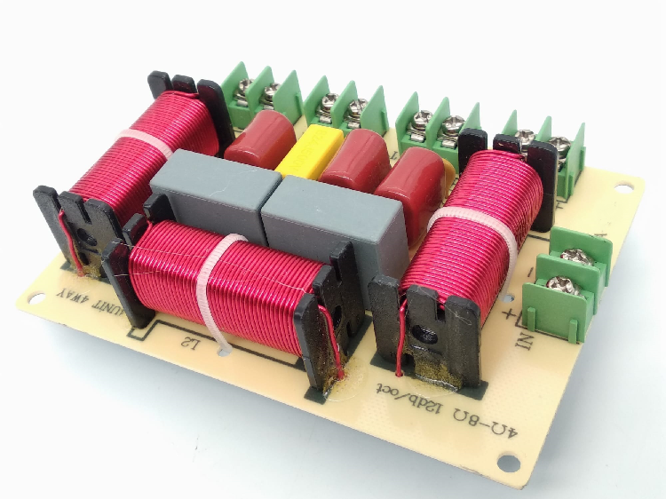 Composants de qualité, bobines en fil de cuivre pur à 99,99% sur ferrite, condensateurs MKP, self sur ferrite, protection automatique du tweeter. Excellente musicalité.